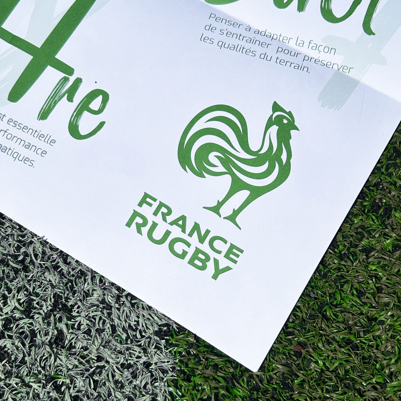 L’objectif était de concevoir un support hybride (poster + brochure) à destination des clubs pour les sensibiliser aux changements climatiques en leur donnant des astuces pour adapter leurs infrastructures : entretien durable, gestion annuelle, collaboration avec les collectivités…
