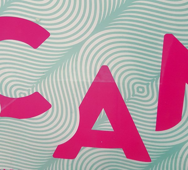 L’affiche du canal ne présente pas réellement un visuel dynamique quoi que l’on s’en rapproche quand même. Ce qui ne fonctionne pas à mon sens, tient du détail. En s’approchant encore plus près, on distingue les limites du logiciel vectoriel qui a permis de réaliser cette affiche. Vous pouvez constater que si le motif tout en rondeur se lit très bien de loin, la présence des angles vient casser le signe dans son détail. Ce détail n’est visible que dans le centre de chaque forme, mais il parasite à mon sens l’image, dommage.