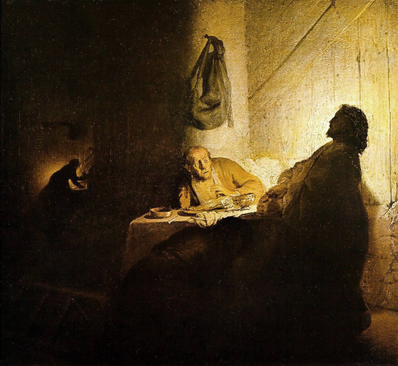 L’exposition commence par l’autoportrait choisit pour l’affiche qui démontre à lui tout seul le génie de ce peintre pour la carnation. L’utilisation de la peinture en pâte épaisse y est très réussit et les ombres en fond de terre de sienne donne au tableau tout l’aspect doré qui rendit son créateur si célèbre. Entouré de quelques peintures de jeunesse, sans grand intérêt, nous nous empressons de passer au salles suivantes qui contiennent elles aussi quelques chefs-d’œuvre comme Les pèlerins d’Emmaüs ou encore Homme en costume oriental.